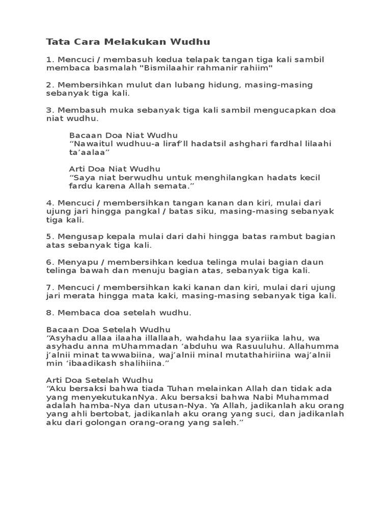 Cara Dan Doa Berwudhuk Docx Document - Source