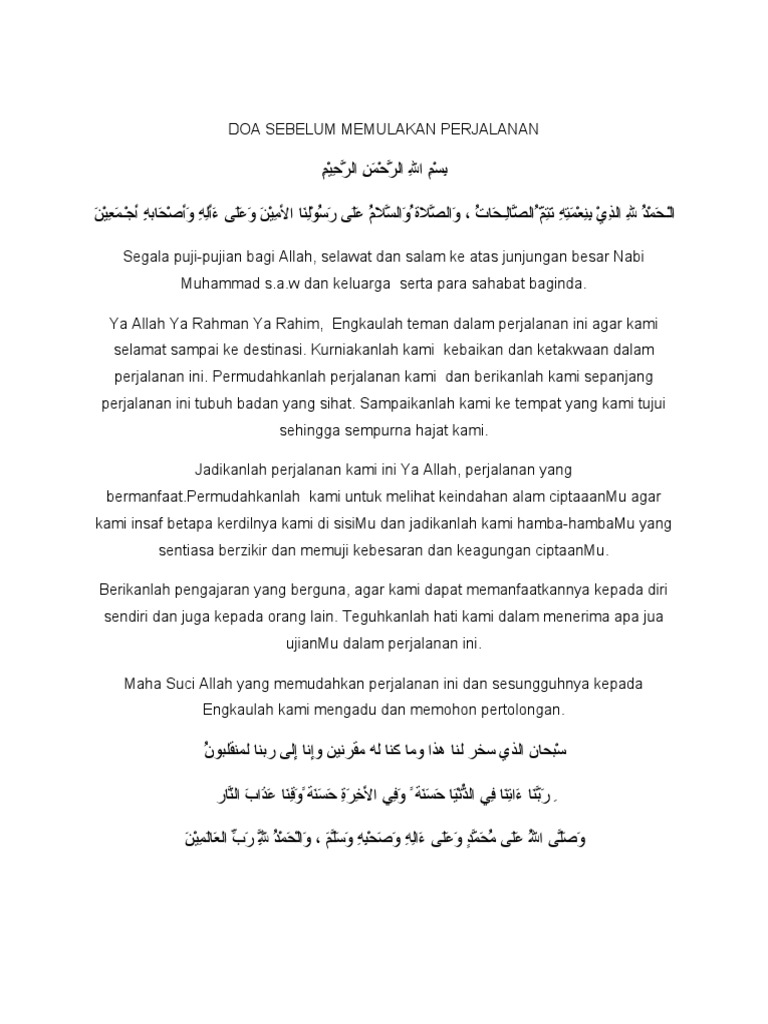 Doa Sebelum Memulakan Perjalanan Doc Document - Source