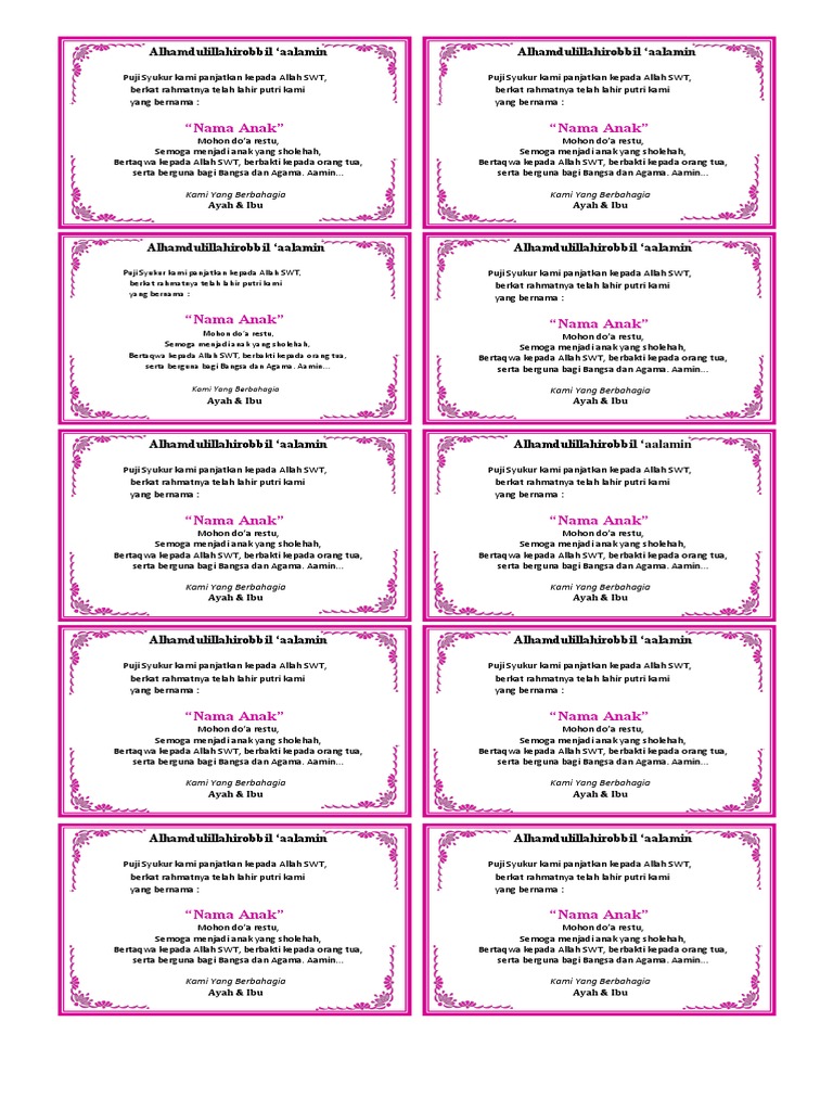 Kartu Ucapan Aqiqah Microsfoft Word - Source