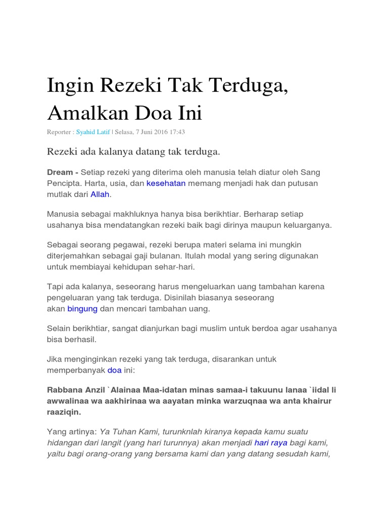 Ingin Rezeki Tak Terduga Amalkan Doa Ini Dreamcoid - Source
