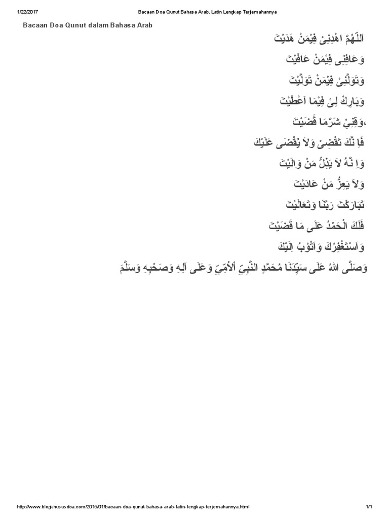 Bacaan Doa Qunut Bahasa Arab Latin Lengkap Terjemahannyapdf - Source