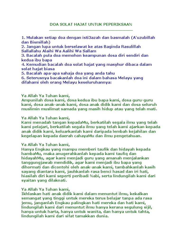 Doa Solat Hajat Untuk Peperiksaan - Source