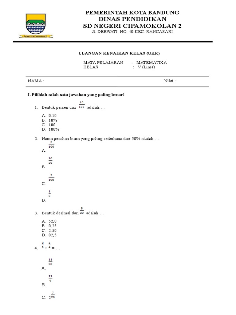 Soal Ukk Matematika Kelas 5 Semester 2 Edit - Source