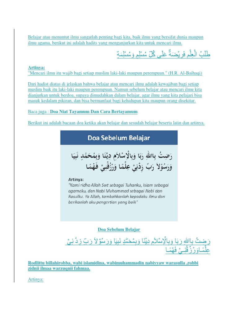 Doa Sebelum Dan Sesudah Belajar Dalam Bahasa Arab Latin - Source