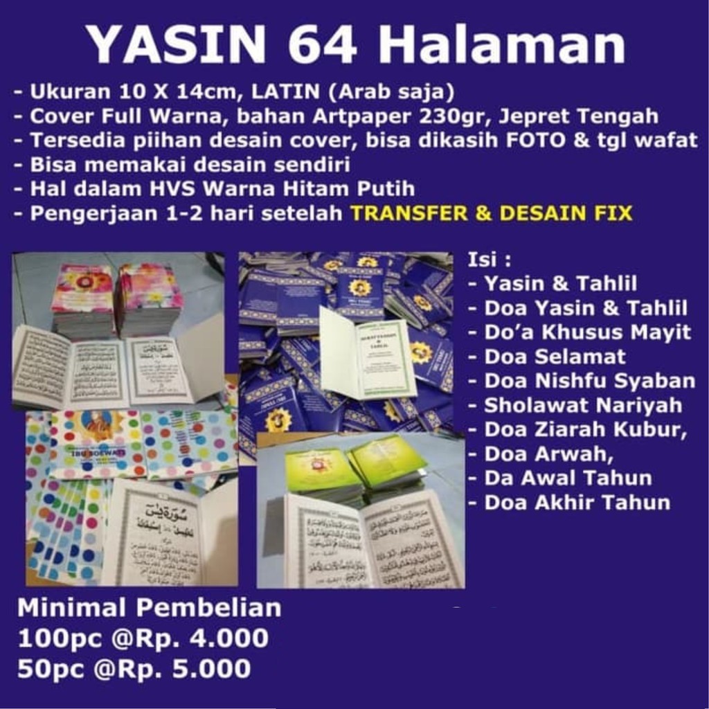 Cetak Yasin 64 Hal Min 50 Custom Pakai Foto - Source