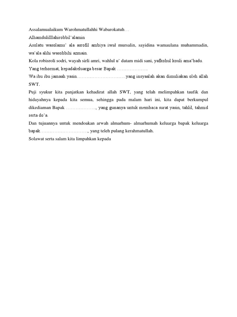 8 Contoh Undangan Tahlil Tahlilan Terlengkap - Source