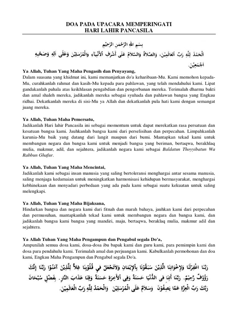 Doa Pada Upacara Memperingati Hari Lahir Pancasila Tanggal 1 - Source