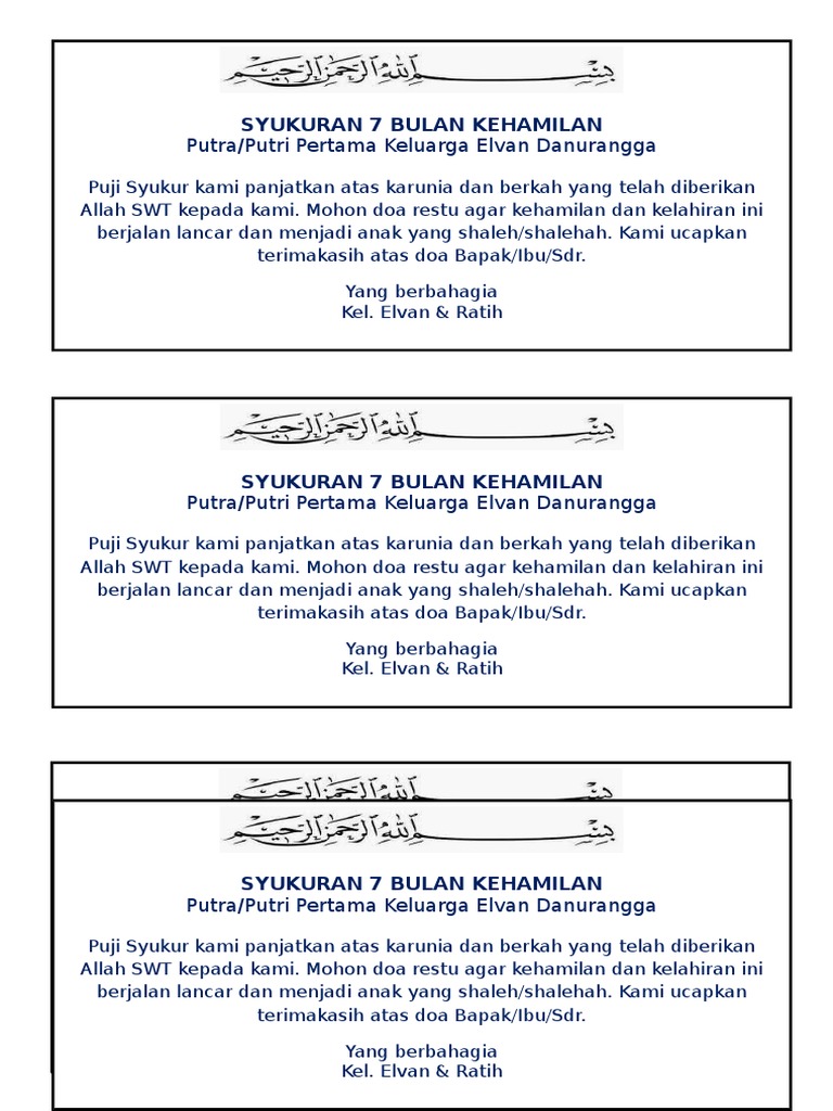Kartu Ucapan Syukuran 4 Atau 7 Bulan Kehamilan Mitoni - Source