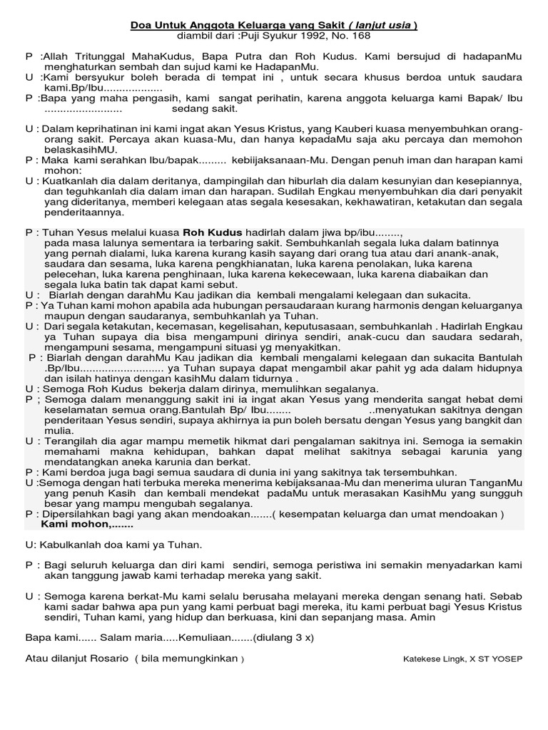 Doa Katolik Untuk Keluarga Yang Sedang Sakit Didoakan Umat - Source