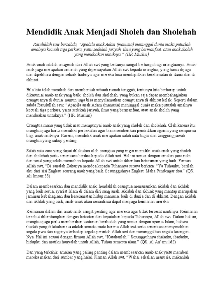 Mendidik Anak Menjadi Sholeh Dan - Source