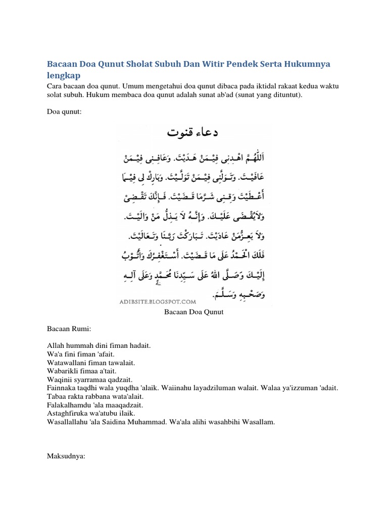 Hukum Bacaan Doa Qunut Sholat Subuh Nazilah Witir Pendek - Source
