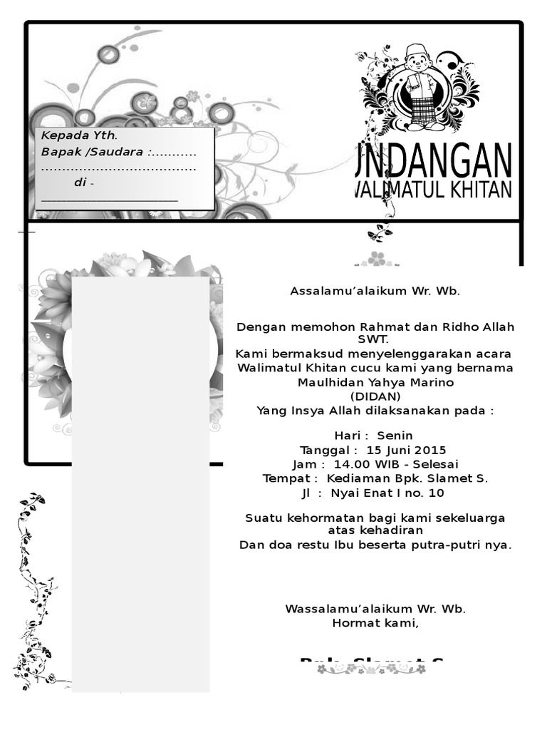 Contoh Surat Undangan Walimatul Khitan Yang Sering - Source