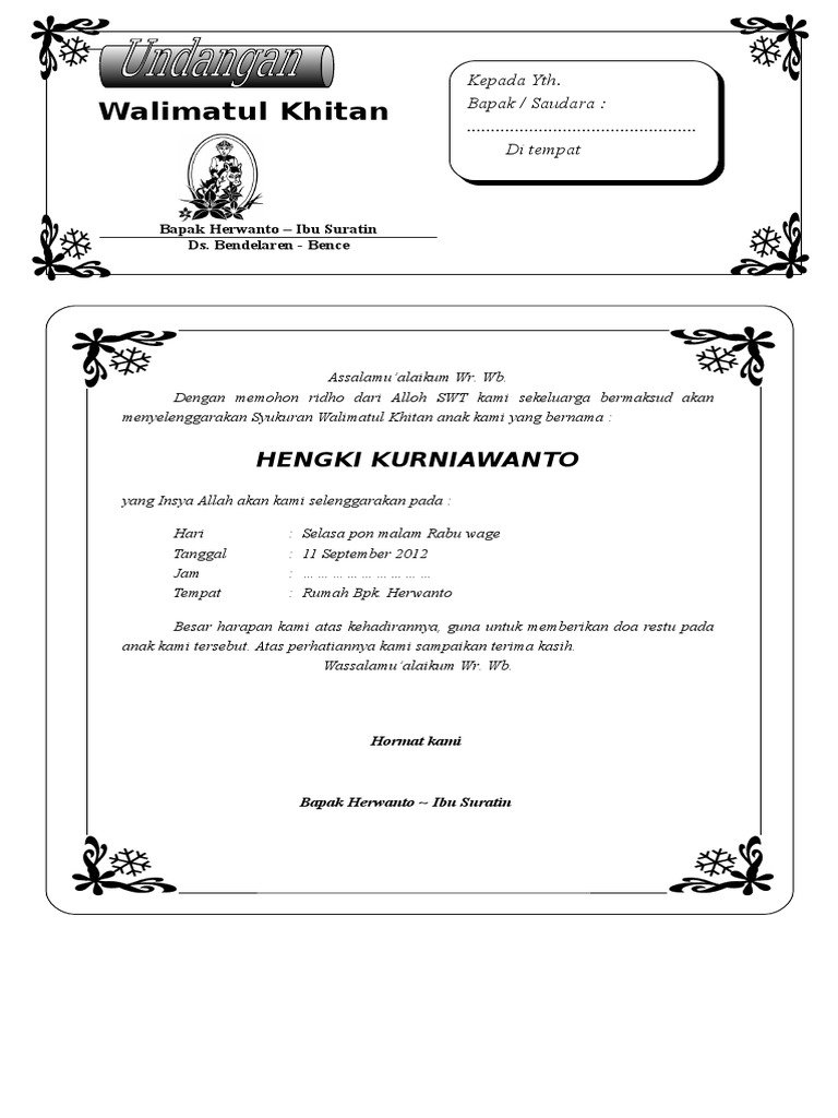Contoh Surat Undangan Walimatul Khitan - Source