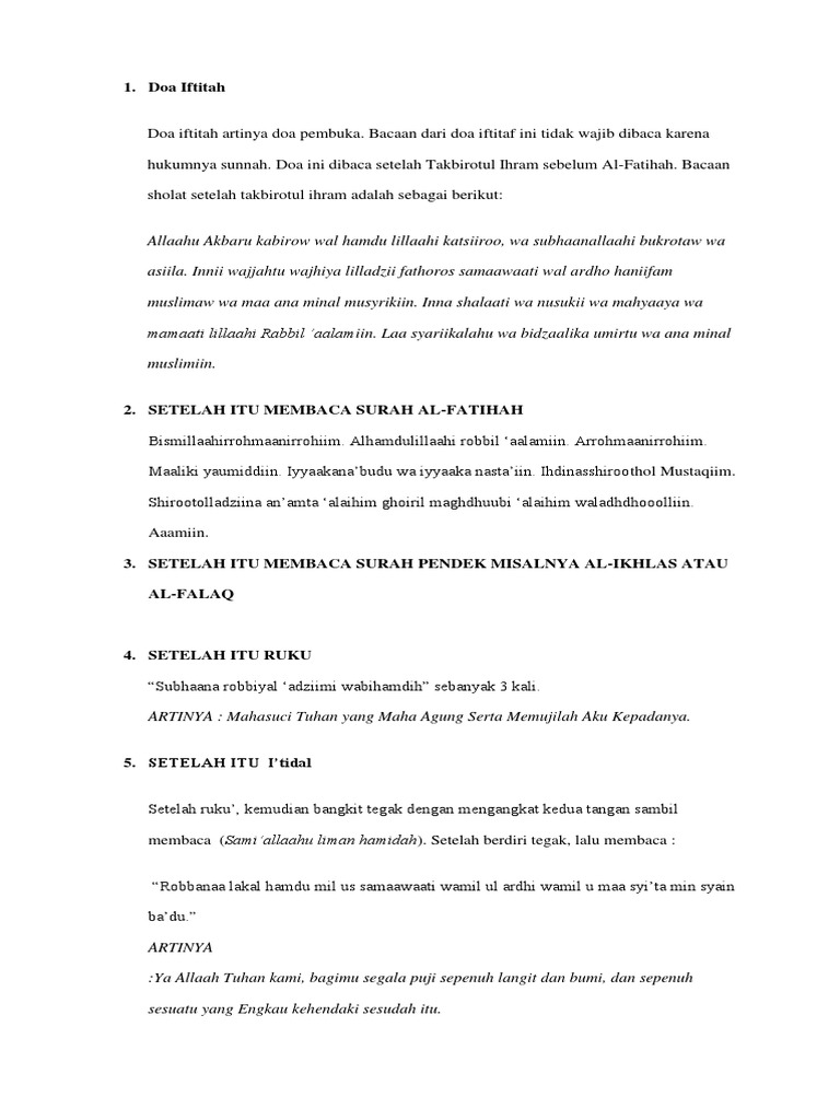 Bacaan Doa Iftitah Dan Terjemahan Lengkap - Source