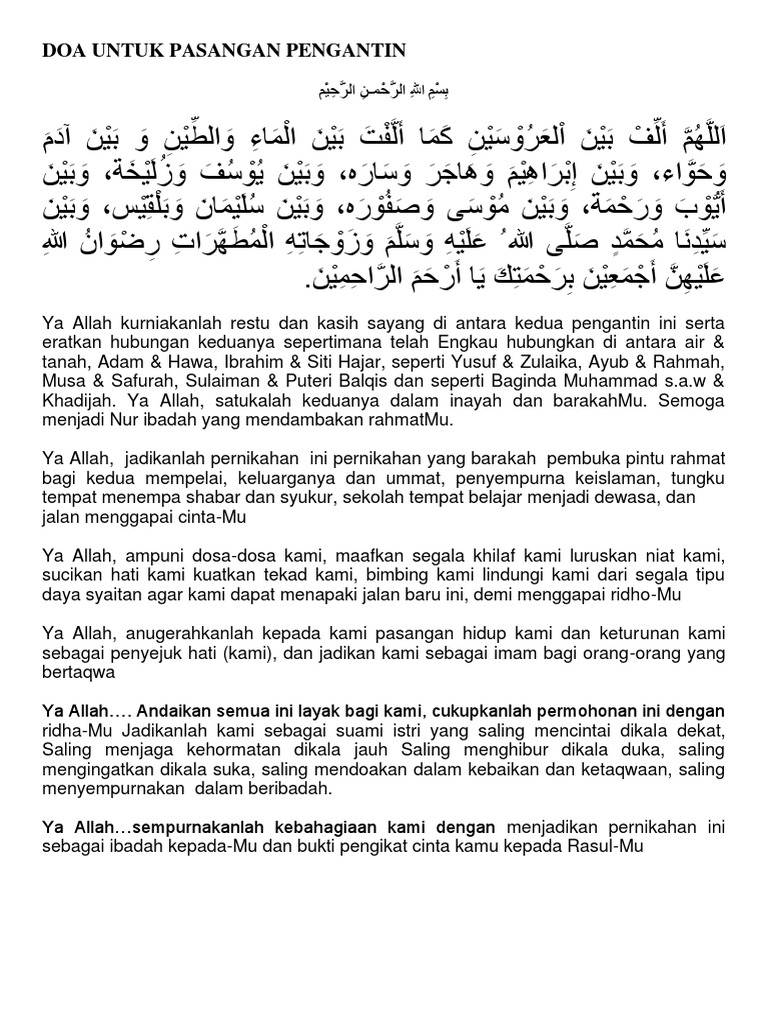 Bacaan Doa Untuk Pengantin Baru Lengkap Latin Dan - Source