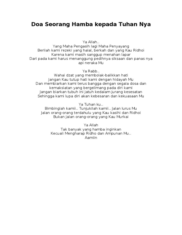 Doa Seorang Hamba Kepada Tuhan Nya - Source