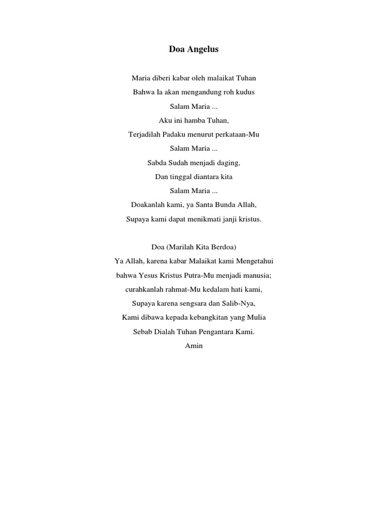 Doa Angelus Katolik Bahasa Indonesia Kumpulan Soal Pelajaran 9 - Source