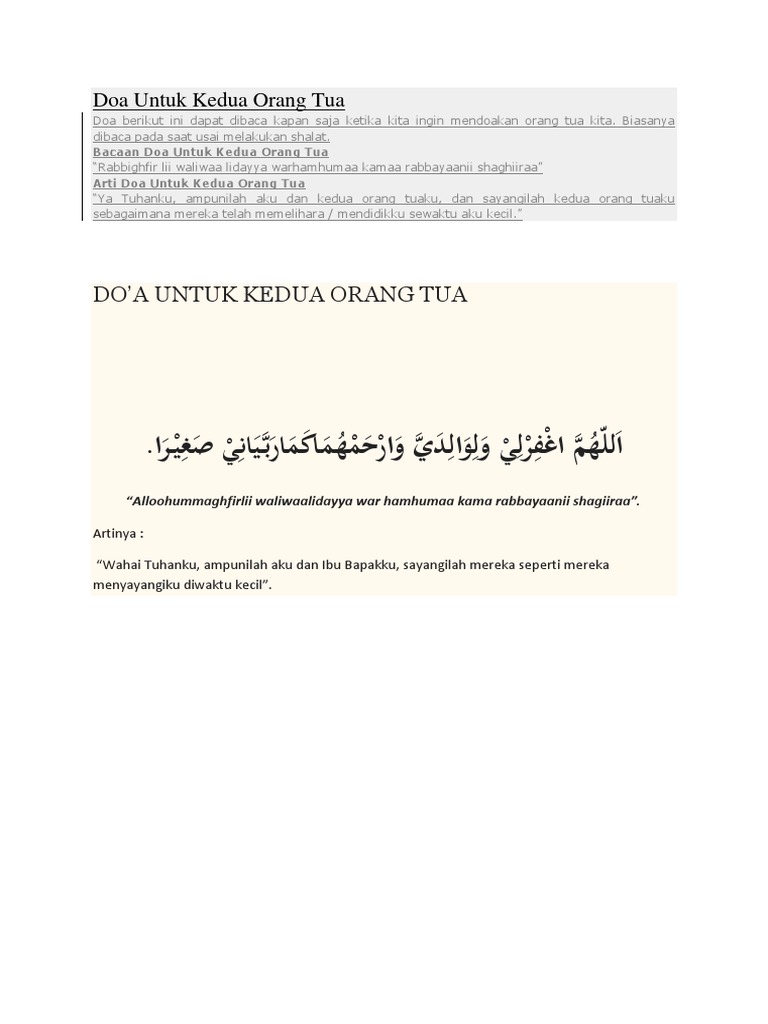Doa Untuk Orang Tua Lengkap Arab Latin Dengan Terjemah - Source