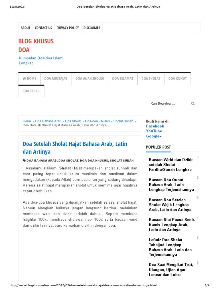 Bacaan Doa Islami Bacaan Doa Setelah Sholat Hajat Lengkap - Source