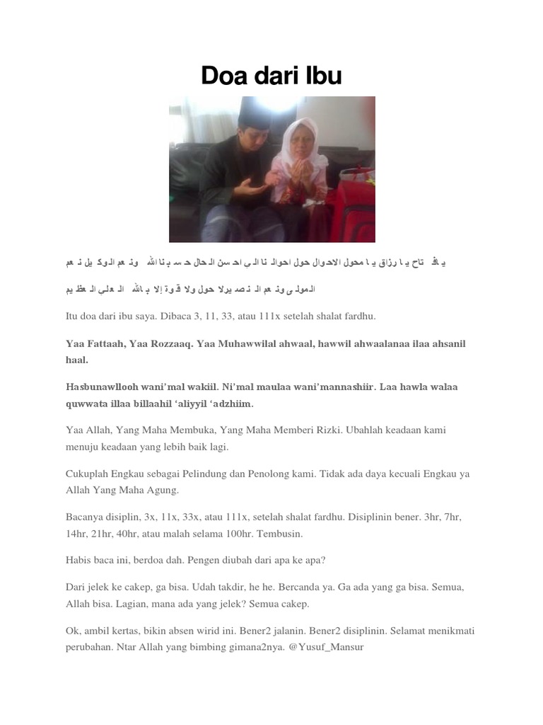 Doa Ibu Ustadz Yusuf Mansur - Source