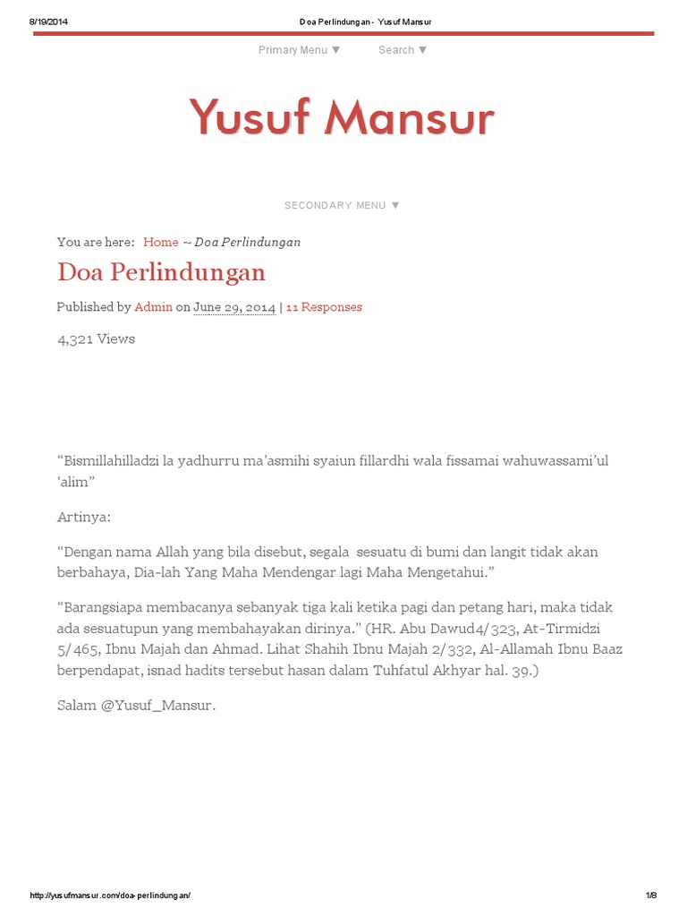 Doa Pengubah Nasib Dan Keadaan Yusuf Mansur - Source