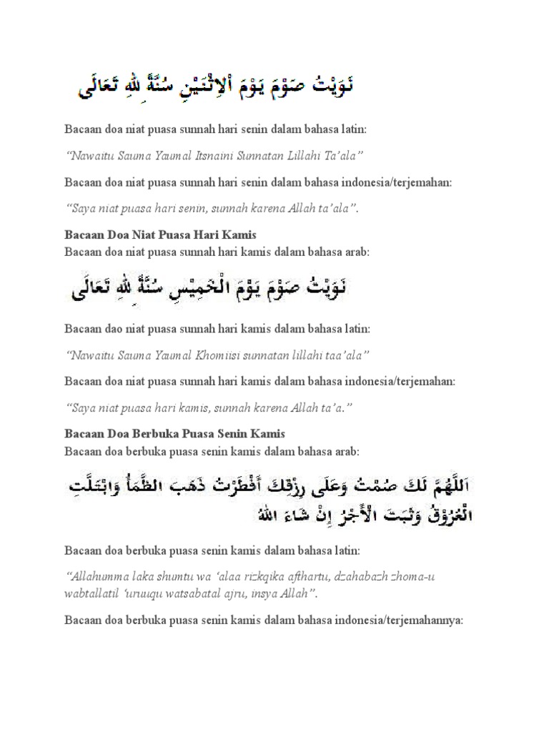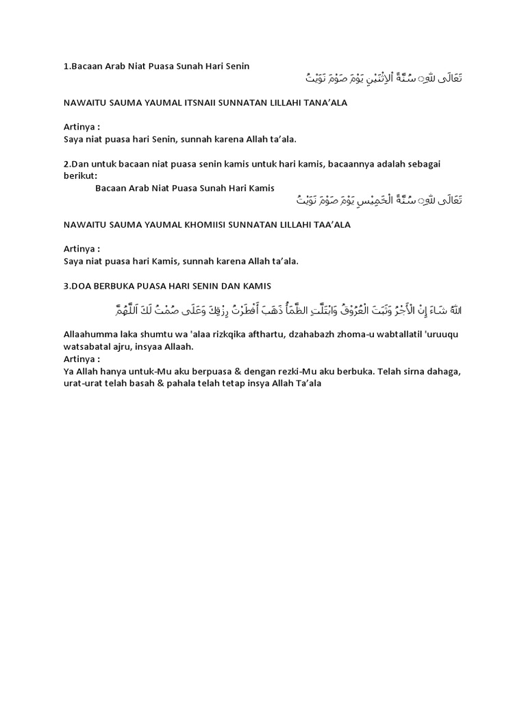 Bacaan Arab Niat Puasa Sunah Hari Senin Docx Document - Source