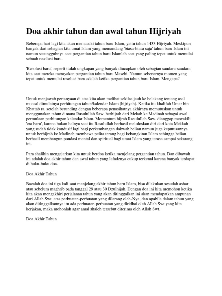 Teks Dan Arti Doa Akhir Dan Awal Tahun Hijriyah Dosen Muslim - Source