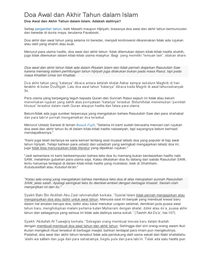 Bacaan Doa Awal Dan Akhir Tahun Lengkap Dalam Latin Tahun - Source