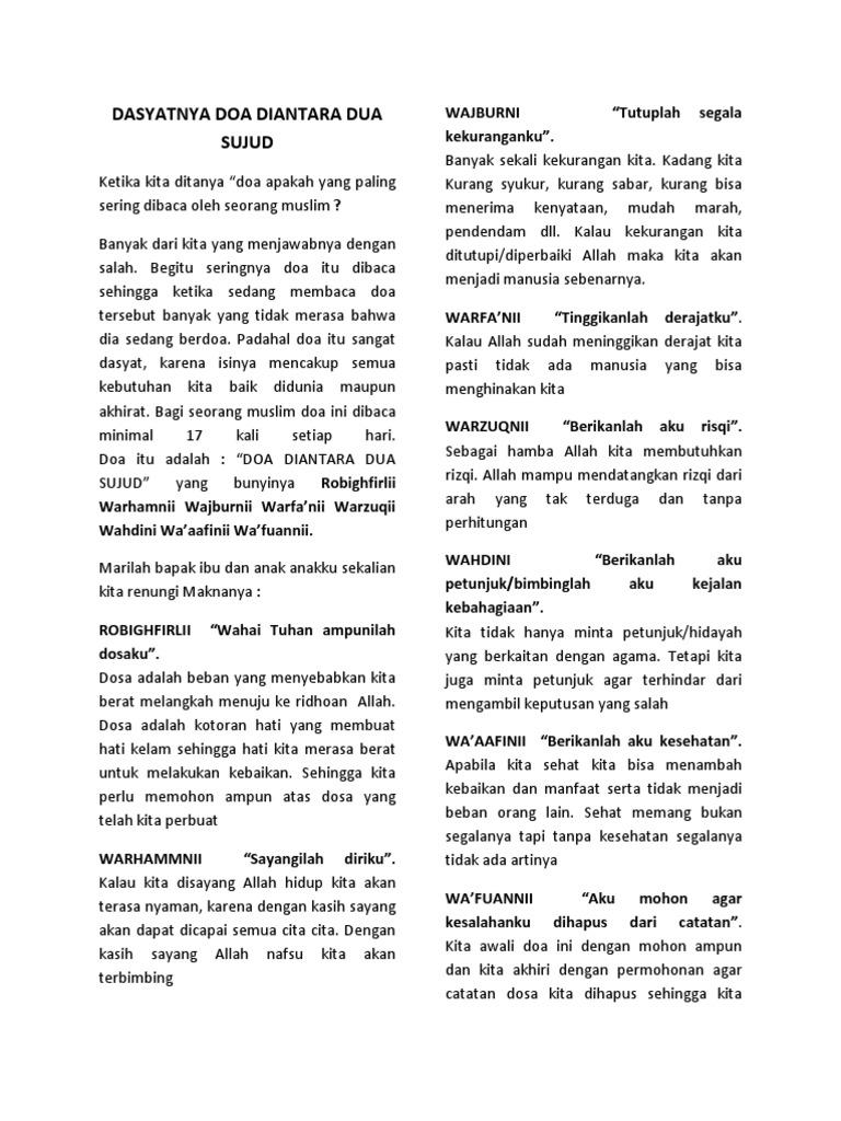 Arti Dari Bacaan Doa Diantara 2 Sujud Apa Kak Askfm - Source